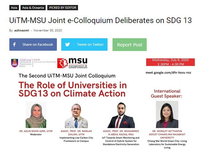 Archive 14 December 2020 Info from : https://qswownews.com/uitm-msu-joint-e-colloquium-deliberates-on-sdg-13/