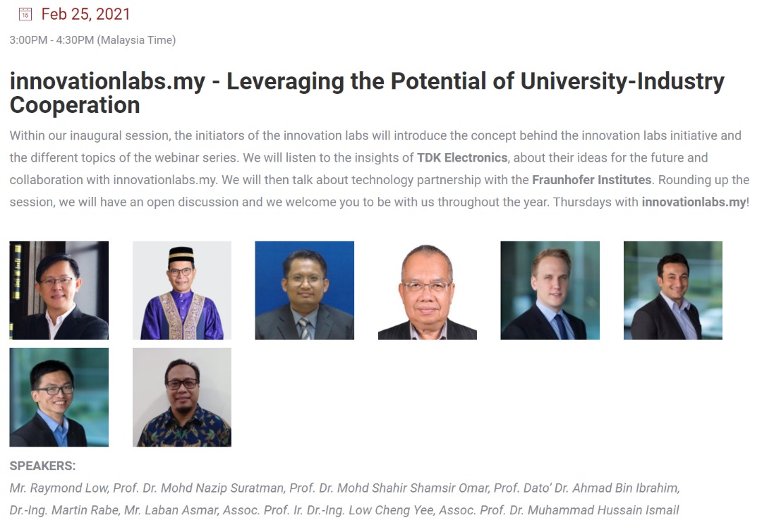 The innovationlabs.my webinar series 2021 is an interactive avenue to exchange our thoughts on different, new technologies and how they lead to innovations in practice. There will be two perspectives covering the topic of each week: researchers provide insight into a technology; practitioner provide insights into their challenges and how the applied technology can overcome the challenges.